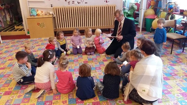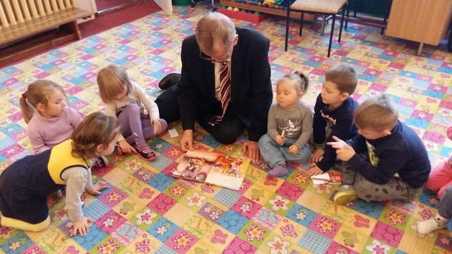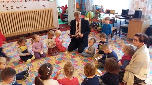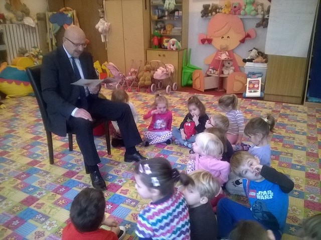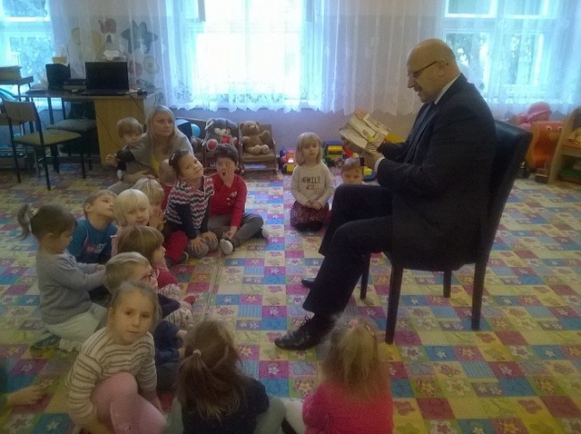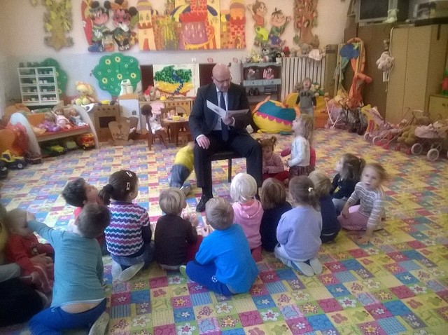Nie przyjechał tu na inspekcję, ale żeby poczytać dzieciom bajeczkę.