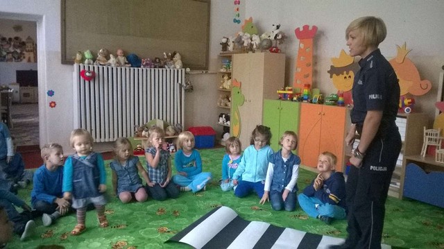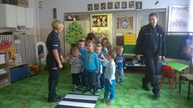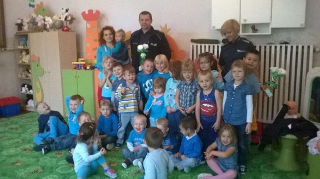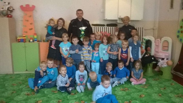 17 września w naszym przedszkolu obowiązywał ubiór w kolorze niebieskim. Tego dnia odiwedzili nas goście z Komendy Powiatowej Policji w Mrągowie, nasz dzielnicowy Marian Deptuła oraz pani Joanna Dawidczyk. Przeprowadzili z dziećmi zajęcia dotyczące bezpieczeństwa na drodze. Nasi wychowankowie bardzo chetnie brali udział z zajęciach, czego dowodem są wspólne zdjecia.