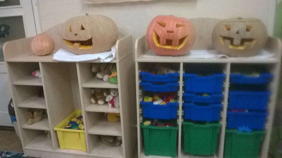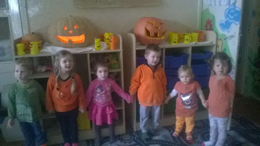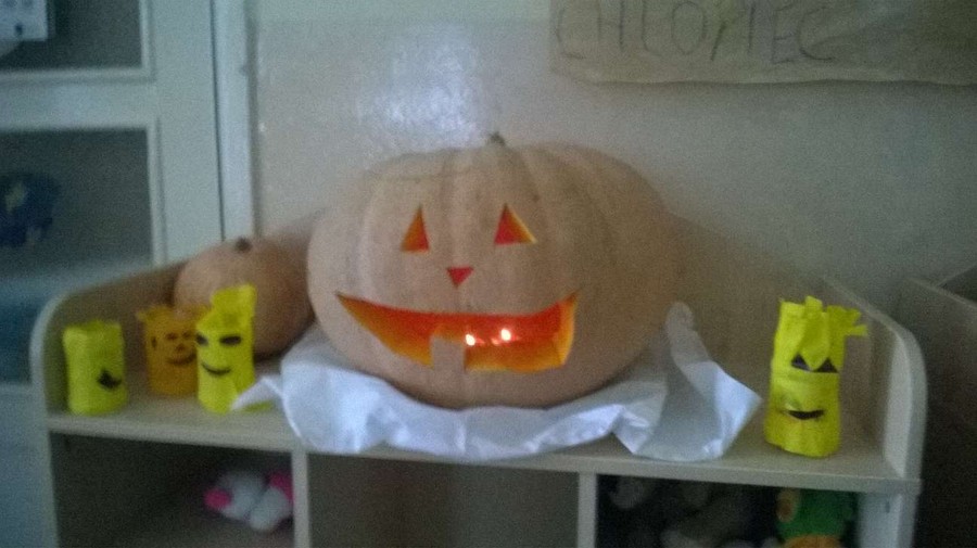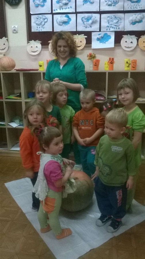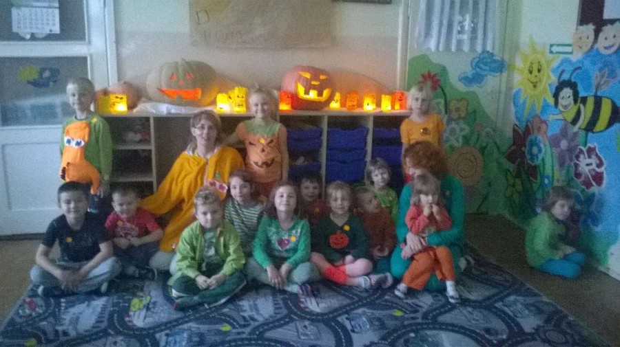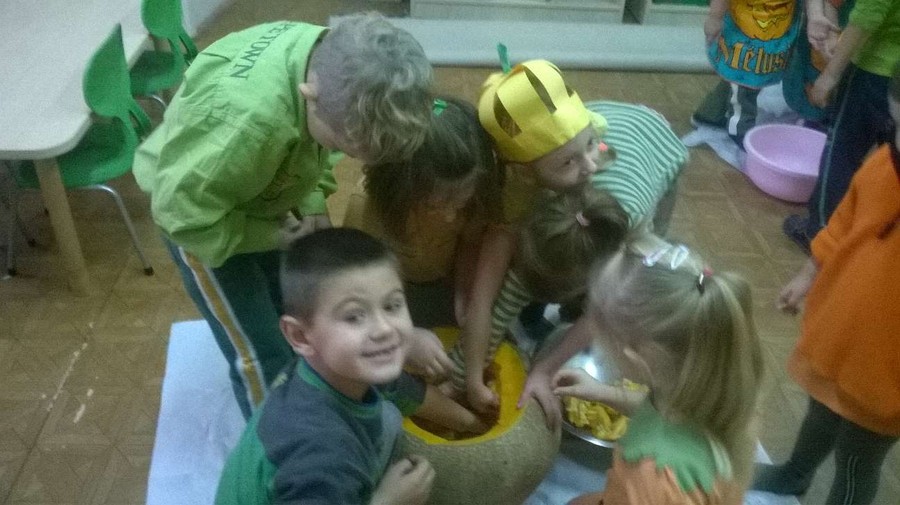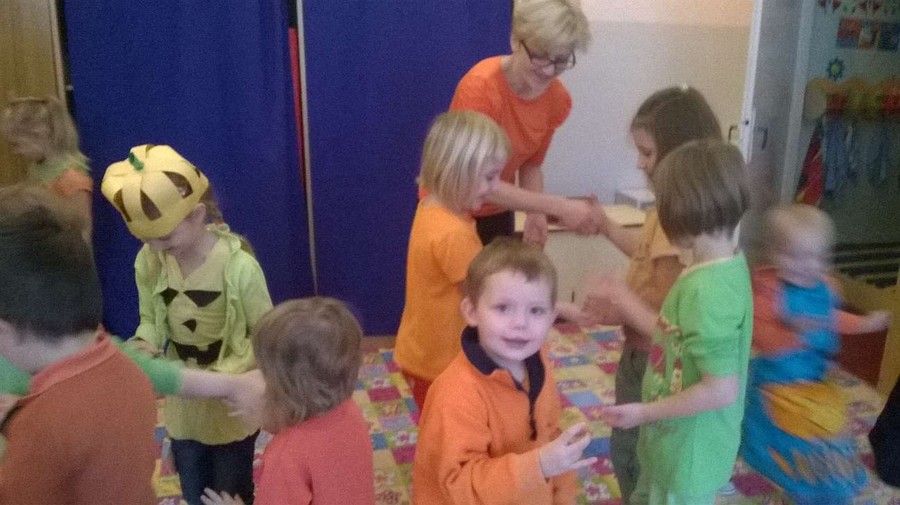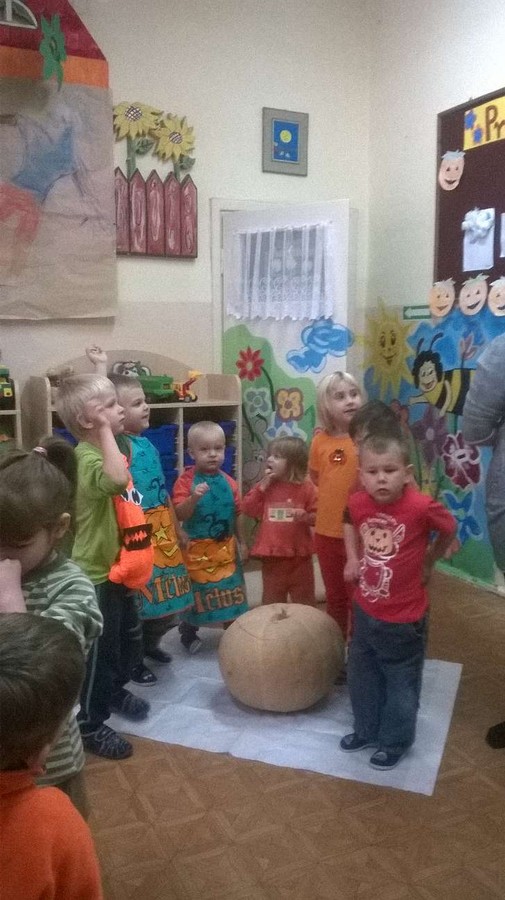 Z tej okazji nasze przedszkole zamieniło się w dyniową krainę, w której królował kolor żółty, pomarańczowy oraz zielony. Nie zabrakło przebrań w których królowało to warzywo. Dzieci wraz z rodzicami ułożyły wiele rymowanek i wierszyków dotyczących dyni. Nasze przedszkolaczki przyniosły również wiele przepisów z wykorzystaniem tego warzywa. Jednym słowem praca domowa rodziców i dzieci została odrobiona.