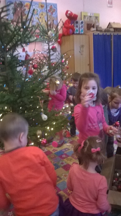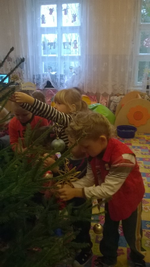 Dzieci czekały na ten moment od dawna, zabraliśmy się za ubieranie choinki, którą podarował nam Święty Mikołaj(dziękujemy wszystkim tym osobom, które przyczyniły się do tego, że w naszym przedszkolu mamy pachnące, żywe choinki!!!).