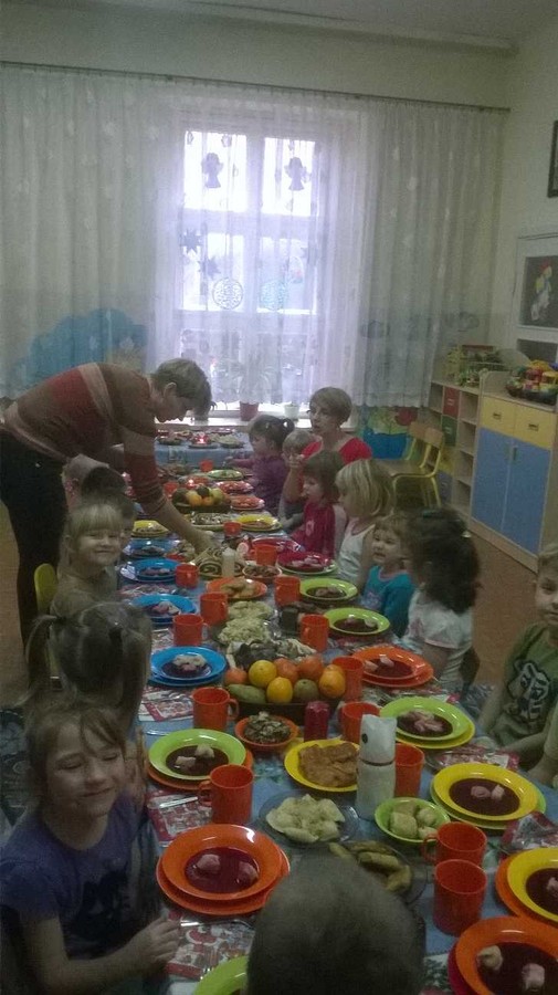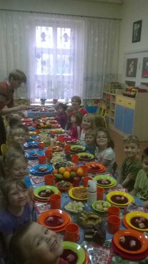 Które przyrządziły nasze wspaniałe panie Brygidka i Tereska. Cała uroczystość przebiegła w bardzo miłej atmosferze, wywołując radość i uśmiech na twarzach dzieci. Takie podniosłe chwile nie tylko utrwalają dzieciom znajomość tradycji i zwyczajów świątecznych, lecz również ,co najważniejsze wzmacniają bliskie i serdeczne relacje.