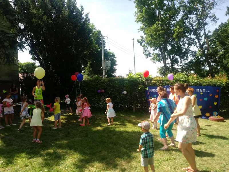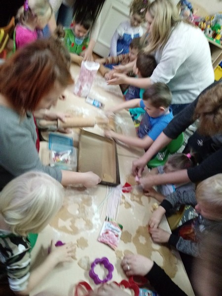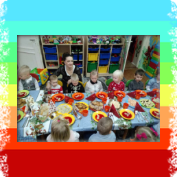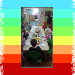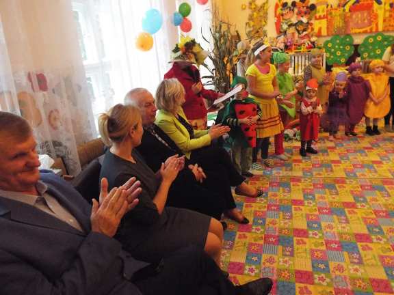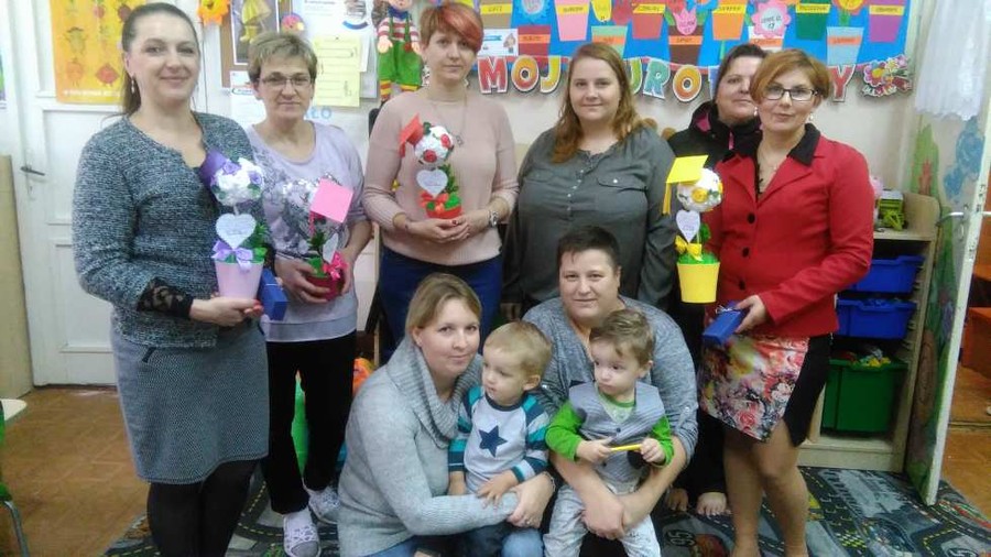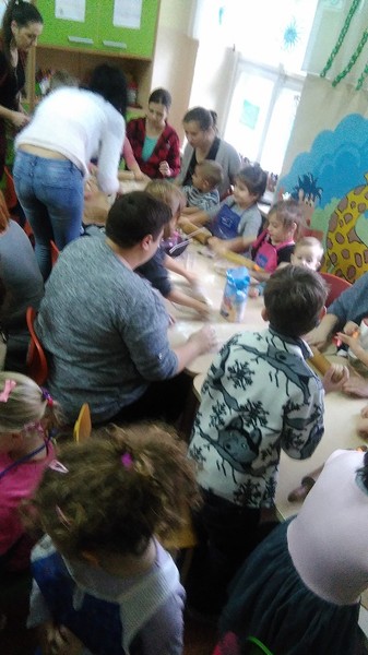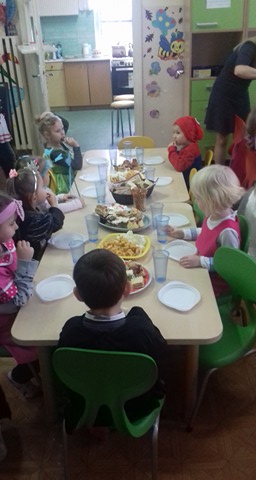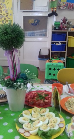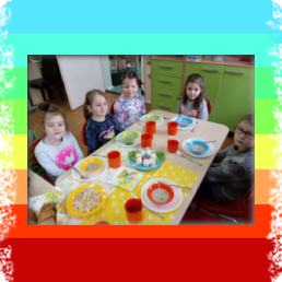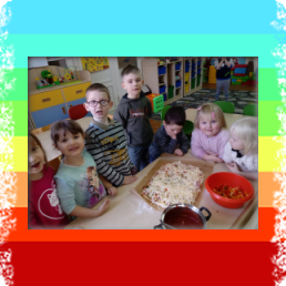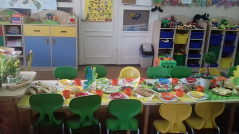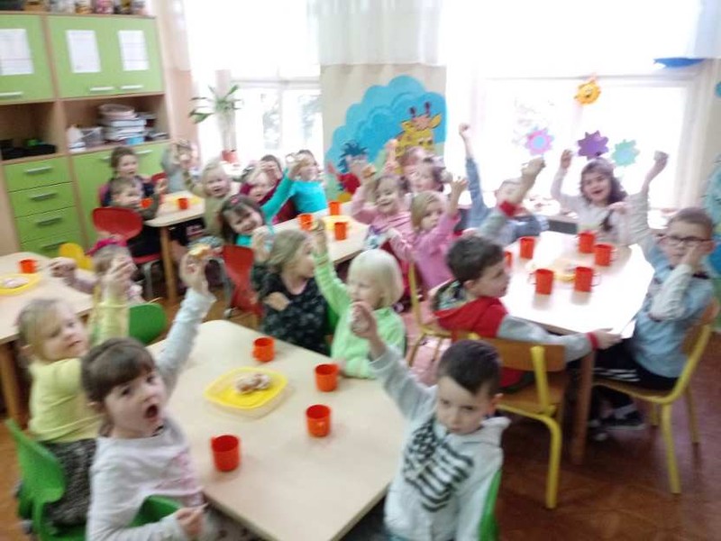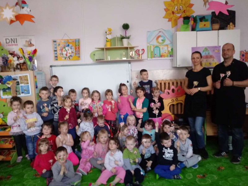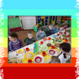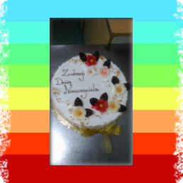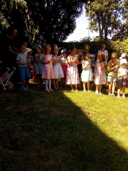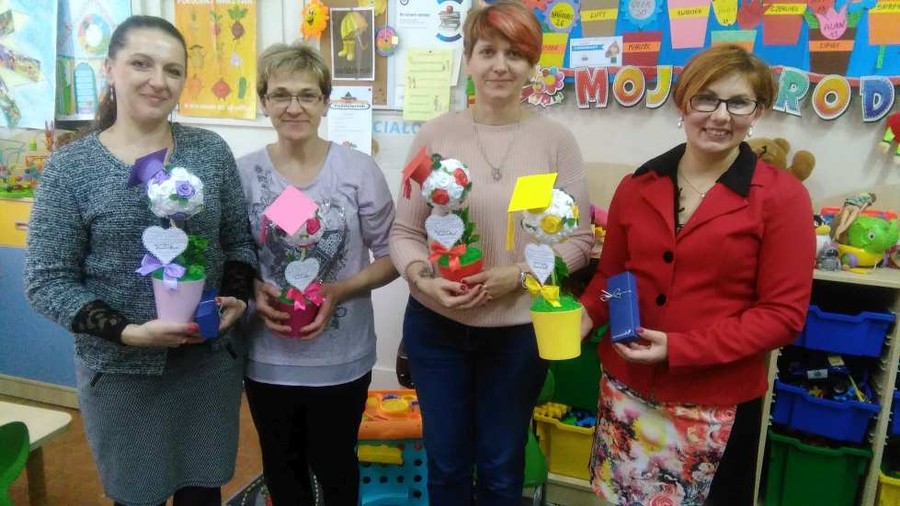 Nasze przedszkolaki również podziękowały swoim ukochanym paniom i pracownikom przedszkola za trud włożony w ich wychowanie. \parPrzewodnicząca Rady Rodziców pani Sylwia Orzeł wraz z innymi mami( Marta G., Renata R., Aneta D. Ewa Ś.) złożyła serdeczne życzenia wszystkim pracownikom przedszkola, podziękowała za trud włożony każdego dnia w kształcenie i wychowanie młodych pokoleń i wręczyła dla wszystkich pań piękne upominki oraz smaczny tort.