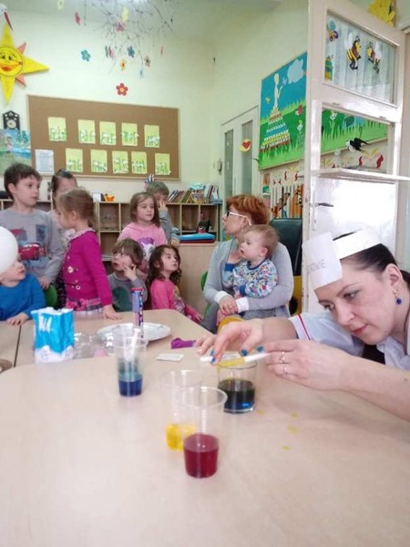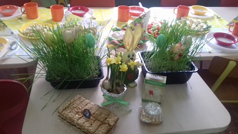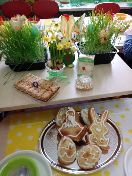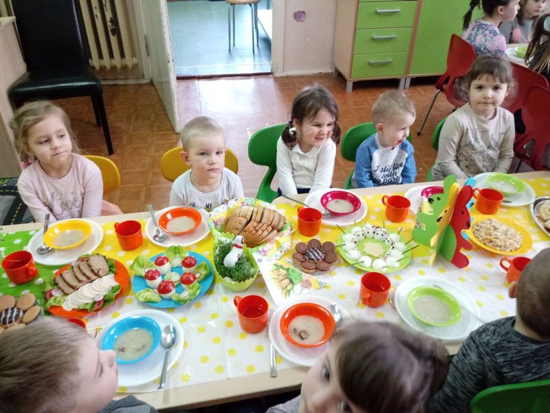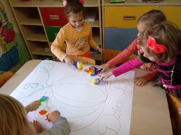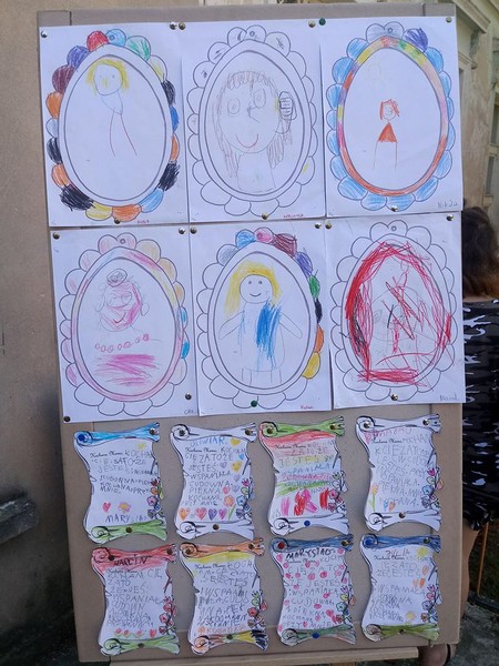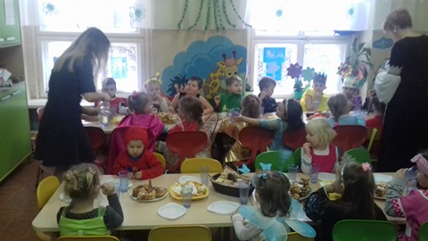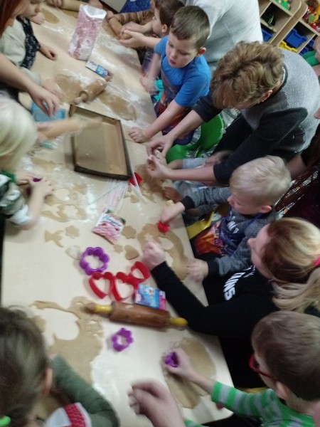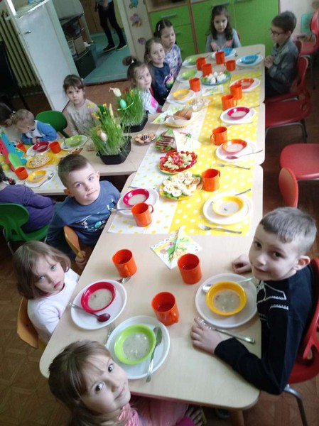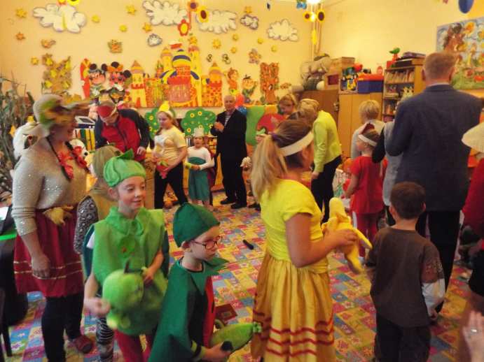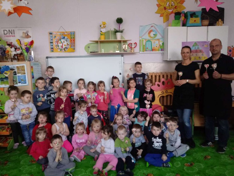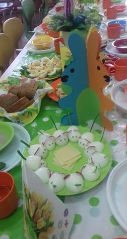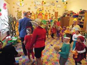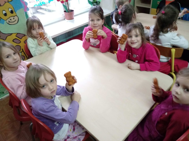 Nasze przedszkolaki również podziękowały swoim ukochanym paniom i pracownikom przedszkola za trud włożony w ich wychowanie. \parPrzewodnicząca Rady Rodziców pani Sylwia Orzeł wraz z innymi mami( Marta G., Renata R., Aneta D. Ewa Ś.) złożyła serdeczne życzenia wszystkim pracownikom przedszkola, podziękowała za trud włożony każdego dnia w kształcenie i wychowanie młodych pokoleń i wręczyła dla wszystkich pań piękne upominki oraz smaczny tort.