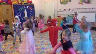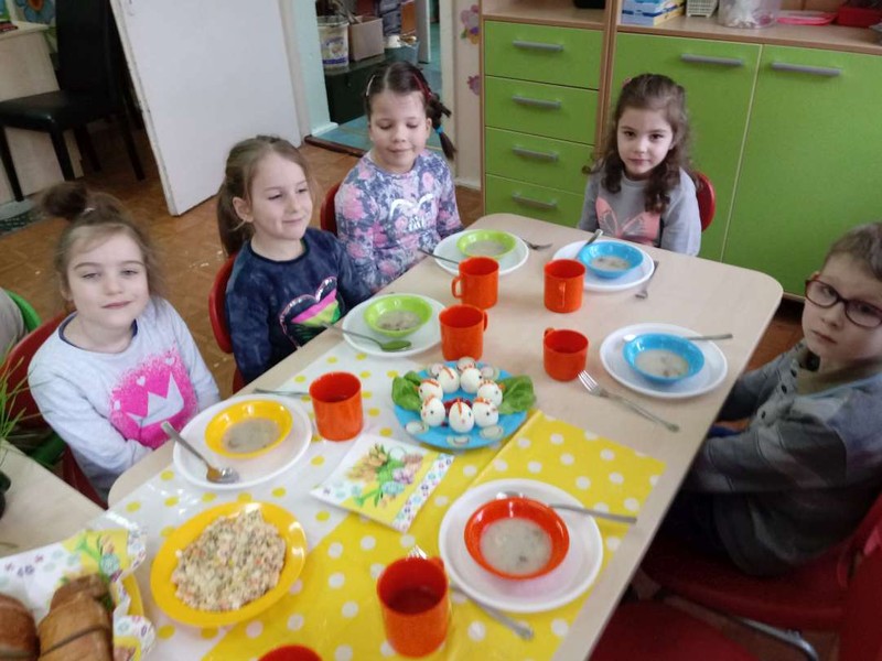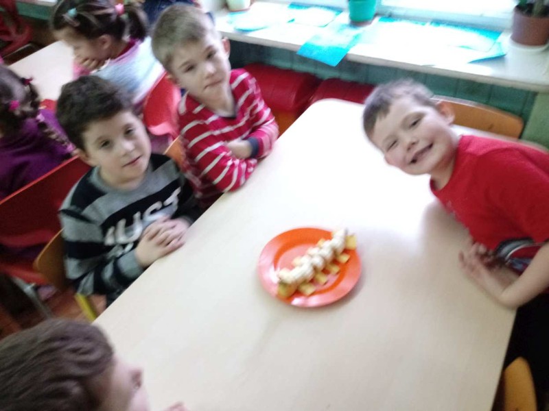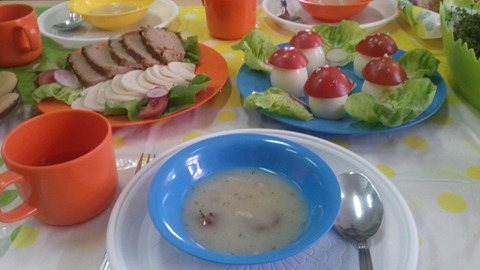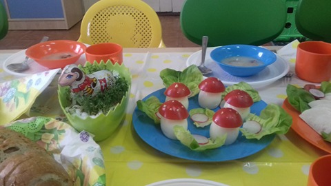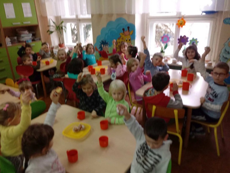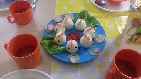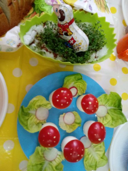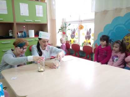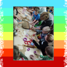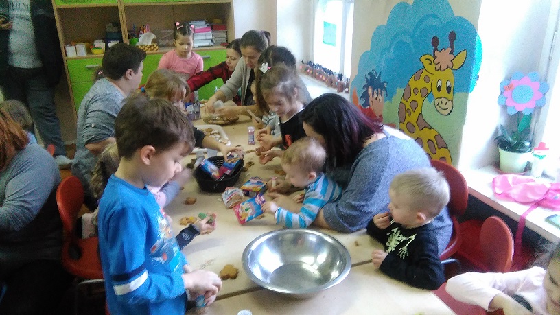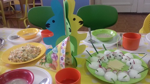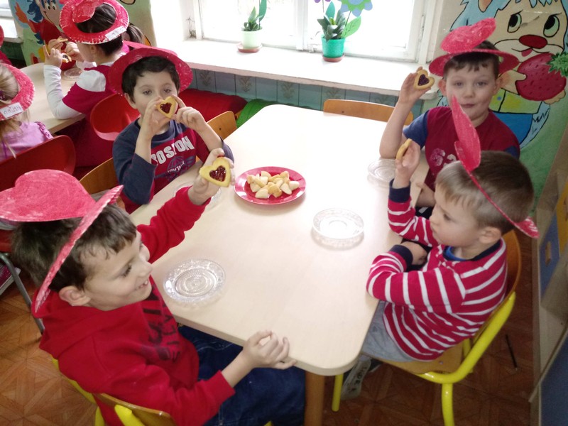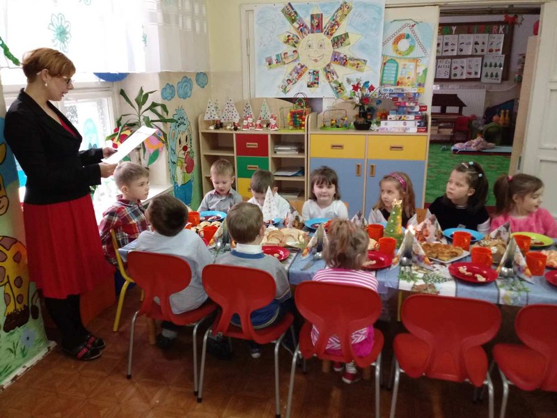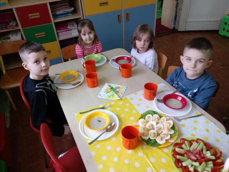 Nasze przedszkolaki również podziękowały swoim ukochanym paniom i pracownikom przedszkola za trud włożony w ich wychowanie. \parPrzewodnicząca Rady Rodziców pani Sylwia Orzeł wraz z innymi mami( Marta G., Renata R., Aneta D. Ewa Ś.) złożyła serdeczne życzenia wszystkim pracownikom przedszkola, podziękowała za trud włożony każdego dnia w kształcenie i wychowanie młodych pokoleń i wręczyła dla wszystkich pań piękne upominki oraz smaczny tort.