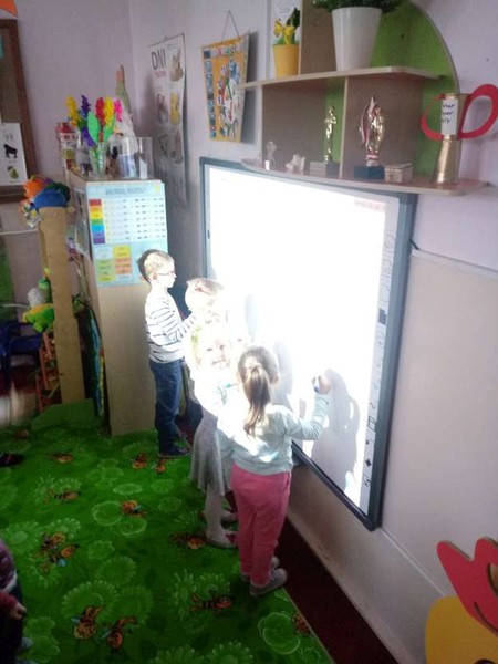 1. Zajęcia rozwijające umiejętność posługiwania się JĘZYKIEM ANGIELSKIM. Celem będzie nabycie znajomości podstawowych słówek i zwrotów w tym języku. Zakupiona zostanie tablica interaktywna, rzutnik, laptop, oprogramowanie do nauki języka angielskiego w przedszkolu.